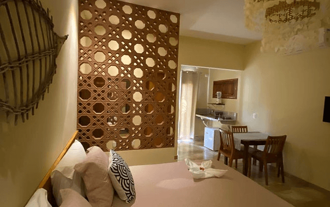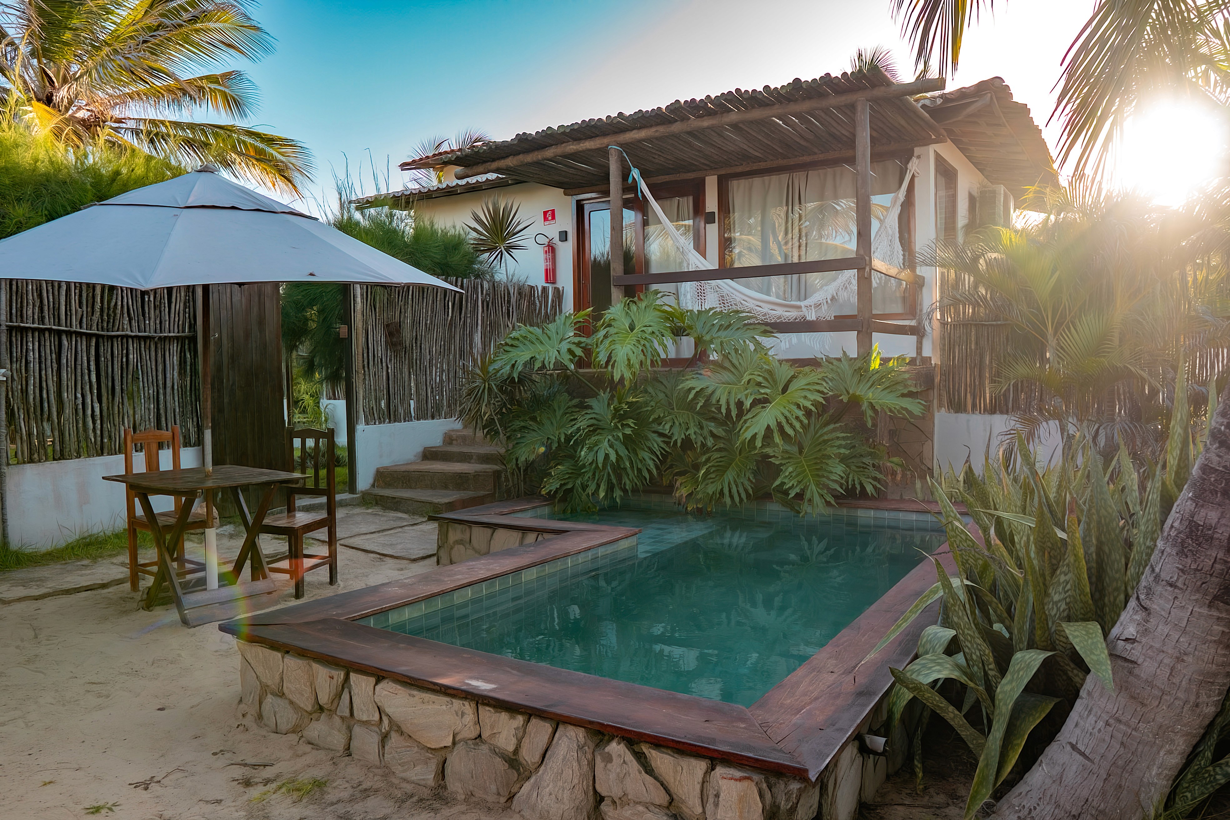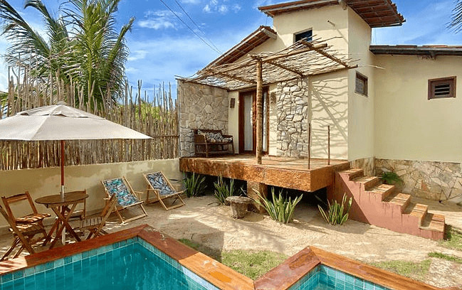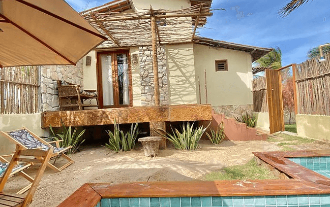Bangalô com piscina privativa, cozinha e jardim. Ideal para casais e famílias de até 03 pessoas.