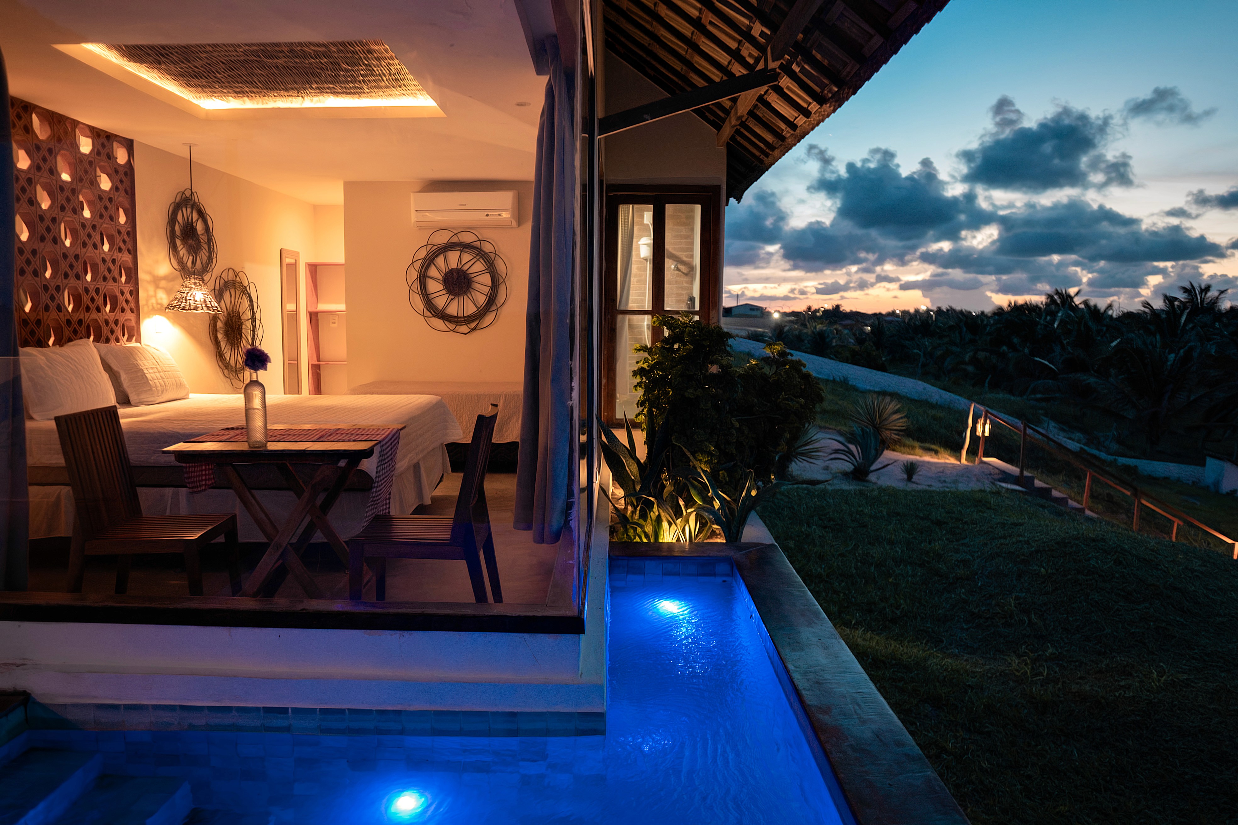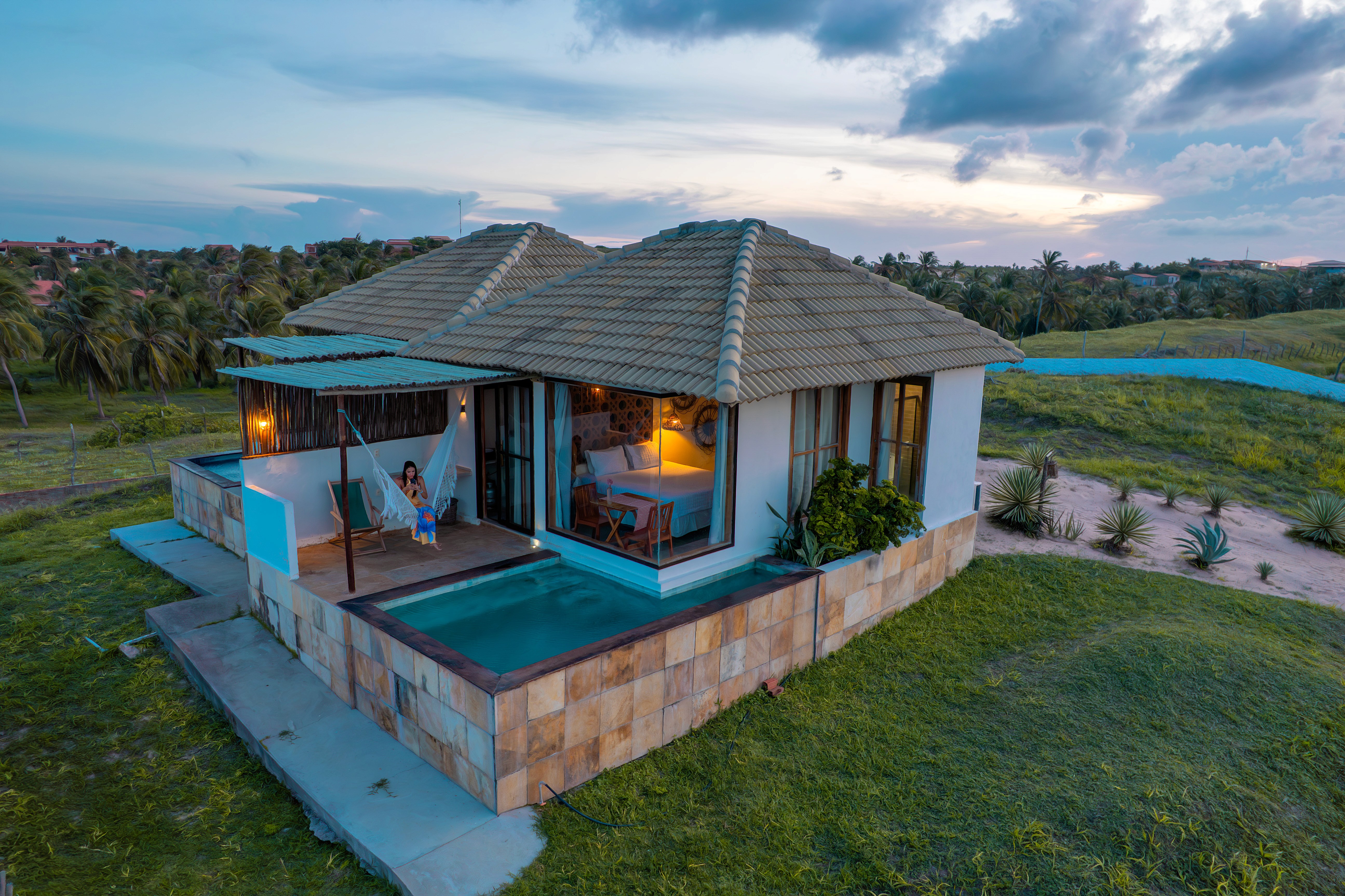 Bangalô com piscina privativa, cozinha e varanda. Ideal para casais e famílias de até 04 pessoas.